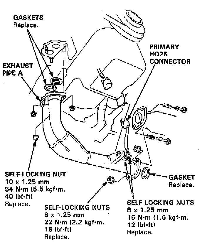 16. Install exhaust pipe A, and connect the primary heated oxygen sensor (H02S) connector.