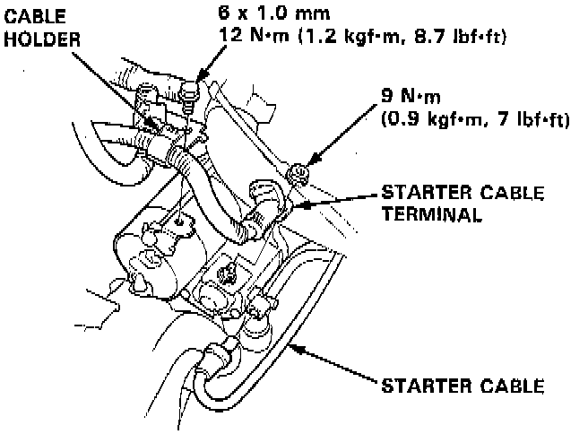 23. Connect the starter cable to the starter motor, and install the cable holder.