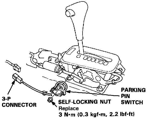 4. If necessary, remove the self-locking nut and the parking pin switch.