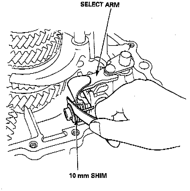 5. Measure the clearance between the select arm and the 10 mm shim.