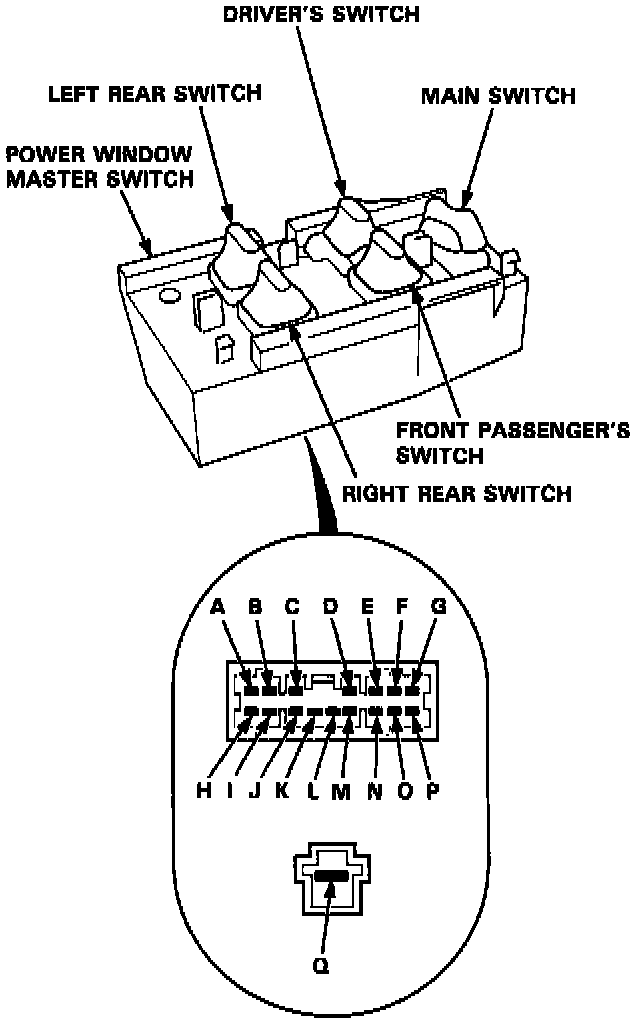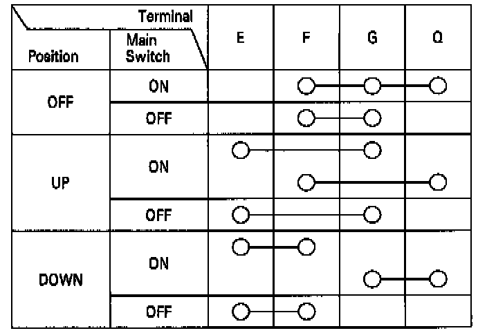The driver's switch is combined with the control unit so you cannot isolate the switch to test it. Instead , run the master switch input test procedures No. 1, 2, 3, and 7 Master Switch Input Test. If the tests are normal, the driver's switch must be faulty.