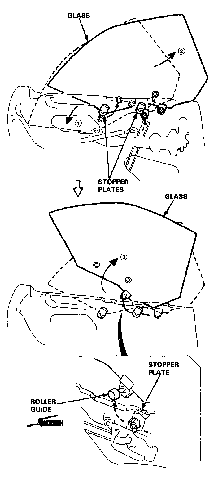 12. Roll the glass up and down to see if it moves freely without binding. Also make sure that there is no clearance between the glass and weatherstrip when the glass is closed. Adjust the position of the glass as necessary.