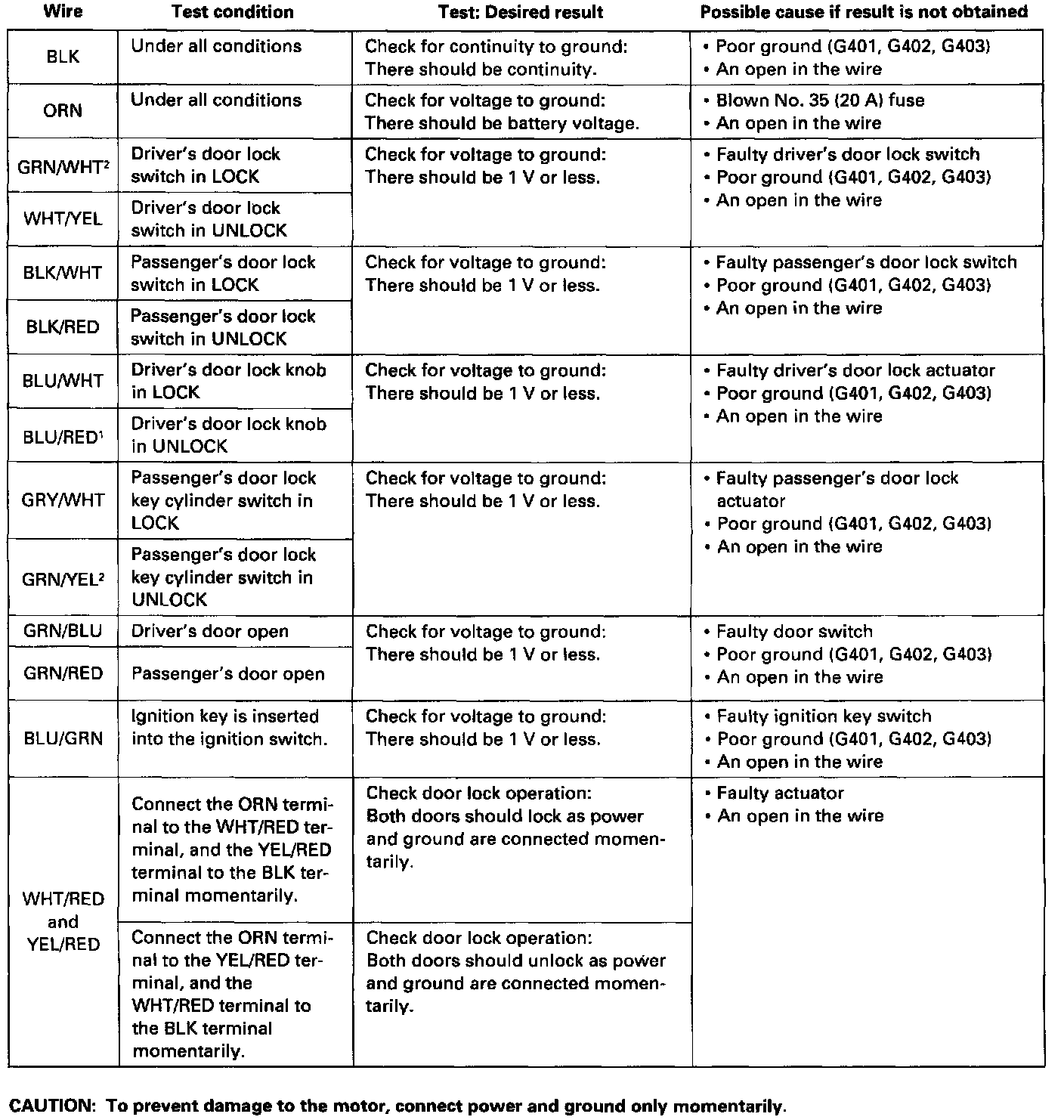 Power Door Lock Control Module: Testing and Inspection