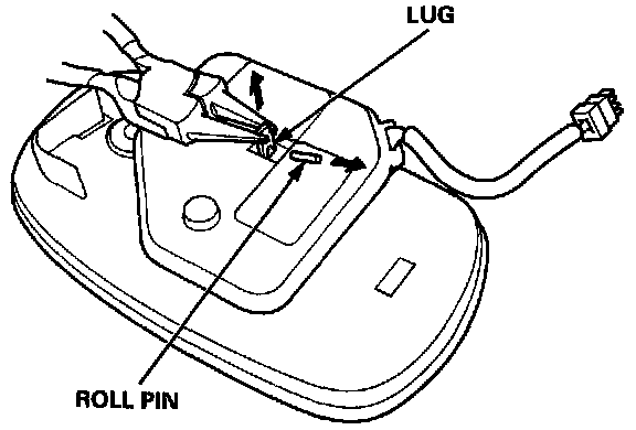 5. Set the new actuator on the back of the mirror with the lug protruding through the middle. Pull up on the lug, and install the roll pin removed in step 3.