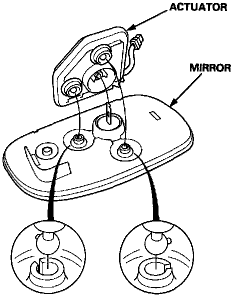 1. Remove the mirror and actuator assembly from the housing.Door Mirror Actuator Replacement: