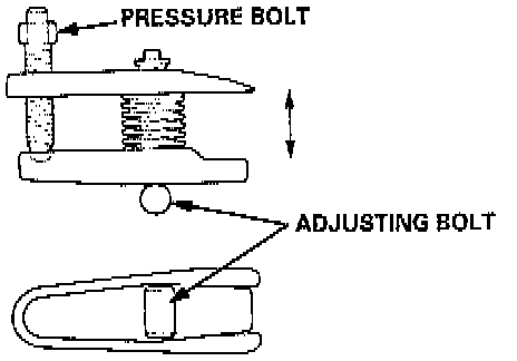 NOTE: After making the adjustment to the adjusting bolt, be sure the head of the adjusting bolt is in this position to the allow the jaw to pivot.