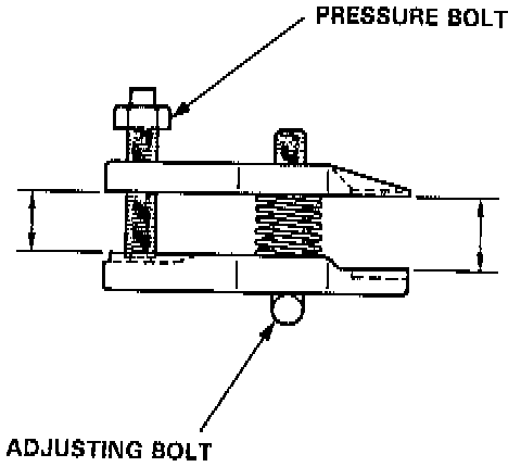 9. Once the tool is in place, turn the adjusting bolt as necessary to make the jaws parallel. Then hand-tighten the pressure bolt, and recheck the jaws to make sure they are still parallel.