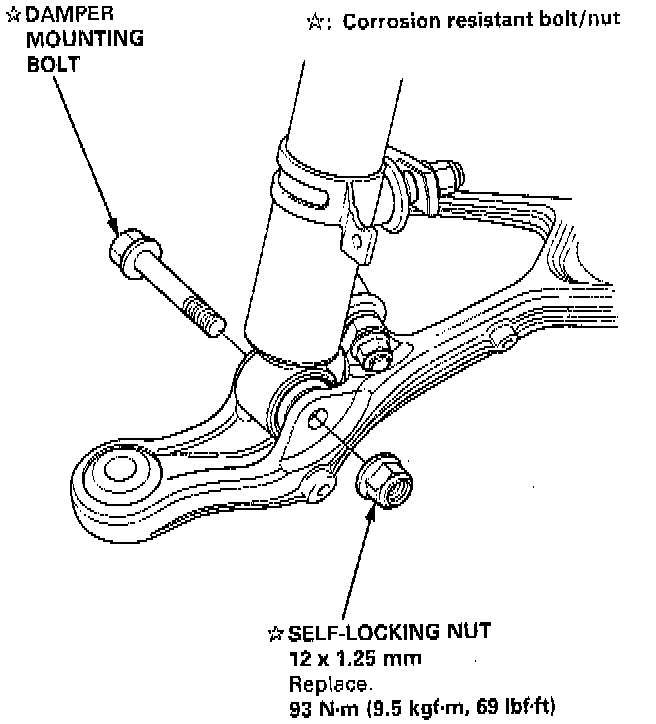 19. Separate the lower control arm and damper by removing the damper mounting bolt.