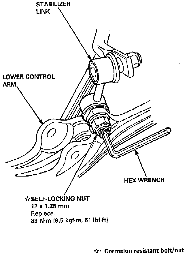 20. Hold the ball pin of the stabilizer link with a hex wrench, and loosen the self-locking nut.