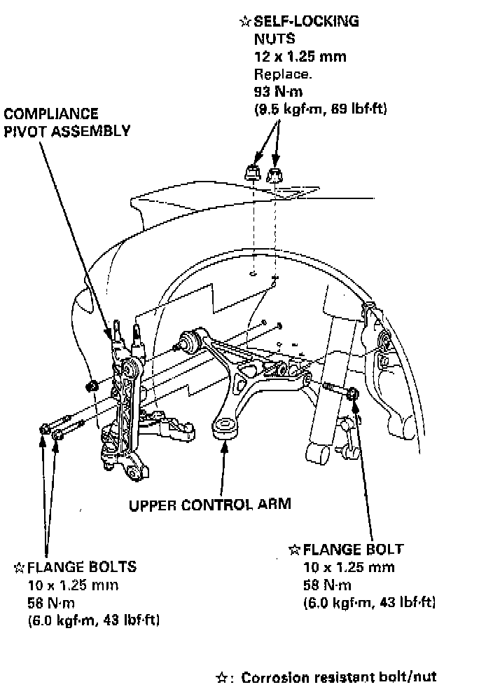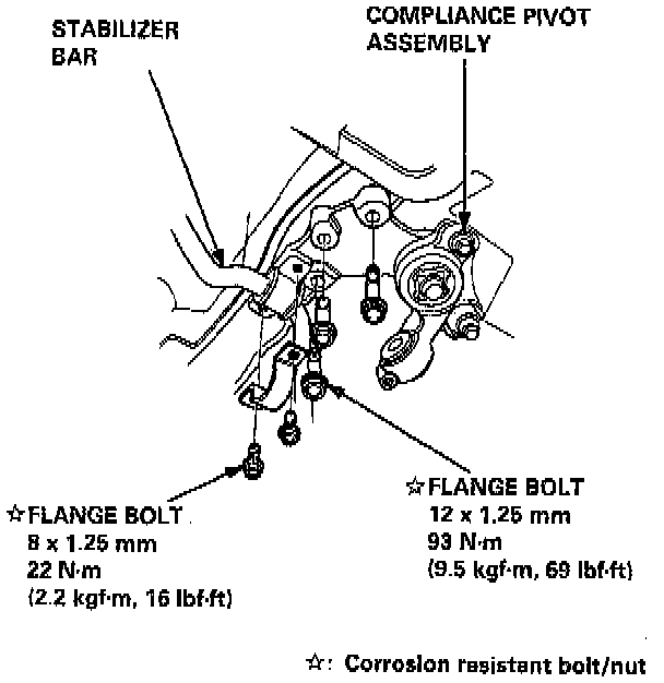 NOTE: Install the upper control arm on the frame before installing the compliance pivot assembly. Install the compliance pivot bolts and nuts. Torque them to the specified torque in the order.
