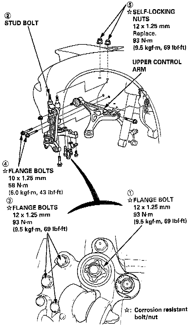 6. Install the 12 mm self-locking nuts (5) and tighten to the specified torque.