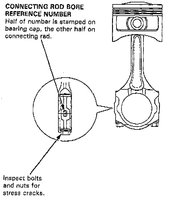 - Inspect each connecting rod for cracks and heat damage.