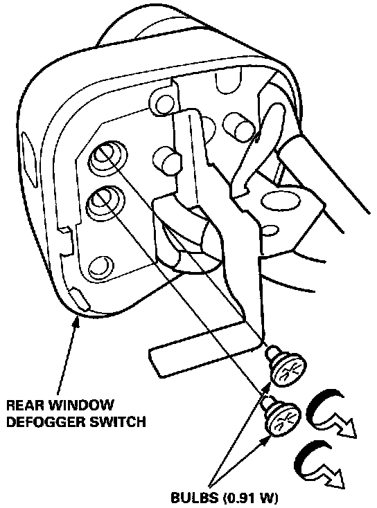 7. If necessary, replace the rear window defogger switch bulbs.