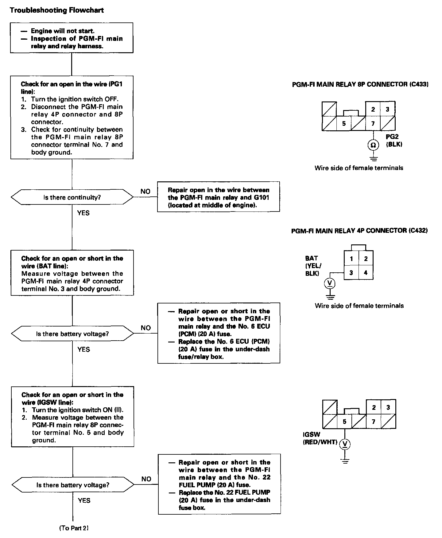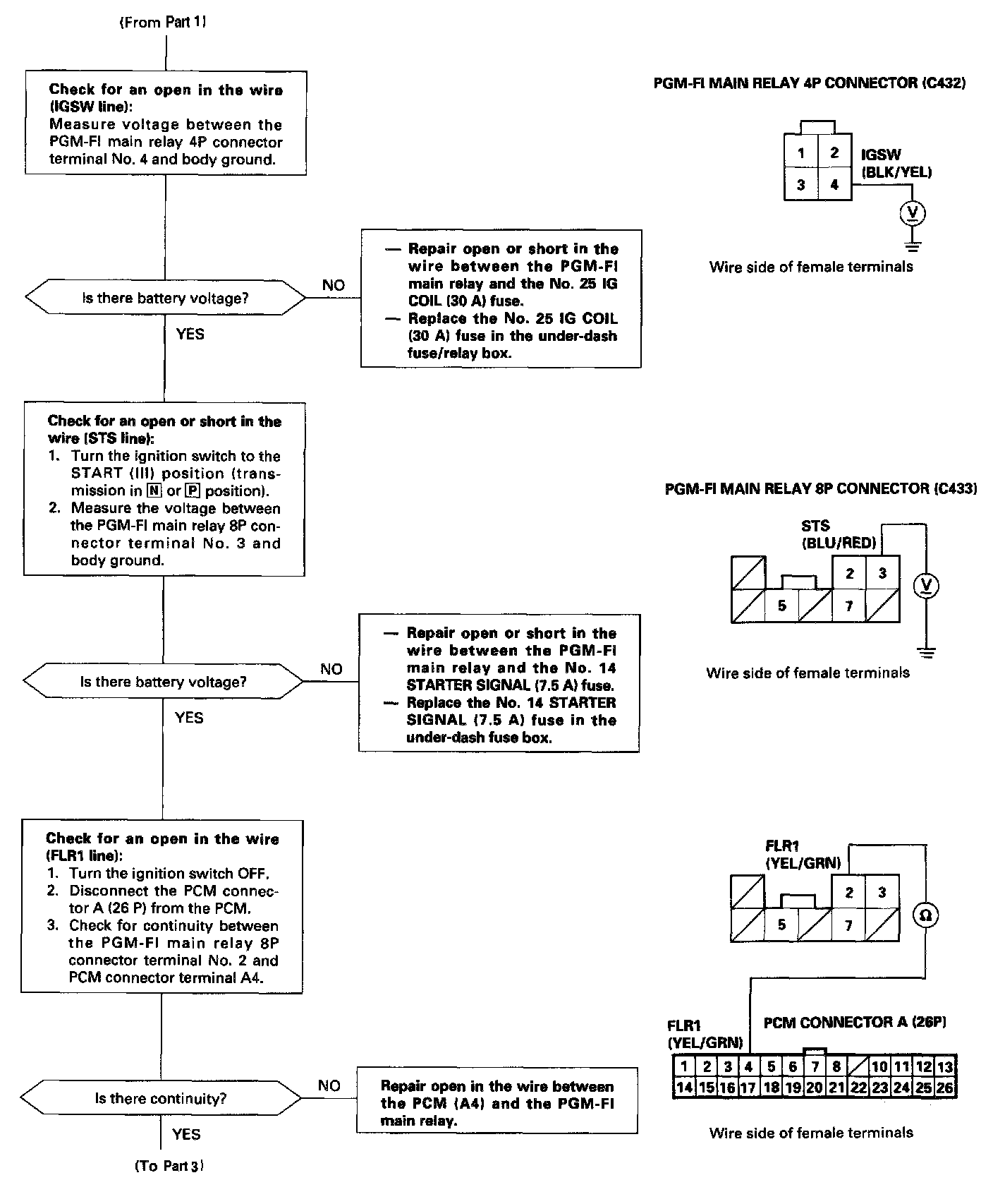 NOTE: If the engine starts and continues to run, the PGM-FI main relay is OK.