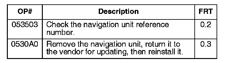 Check the navigation unit reference number. If it's an affected unit, remove it and return it to Alpine for updating. When Alpine returns the navigation unit, reinstall it, and reinitialize the navigation system.