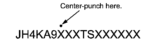 11. Center-punch a completion mark above the seventh character of the engine compartment VIN.