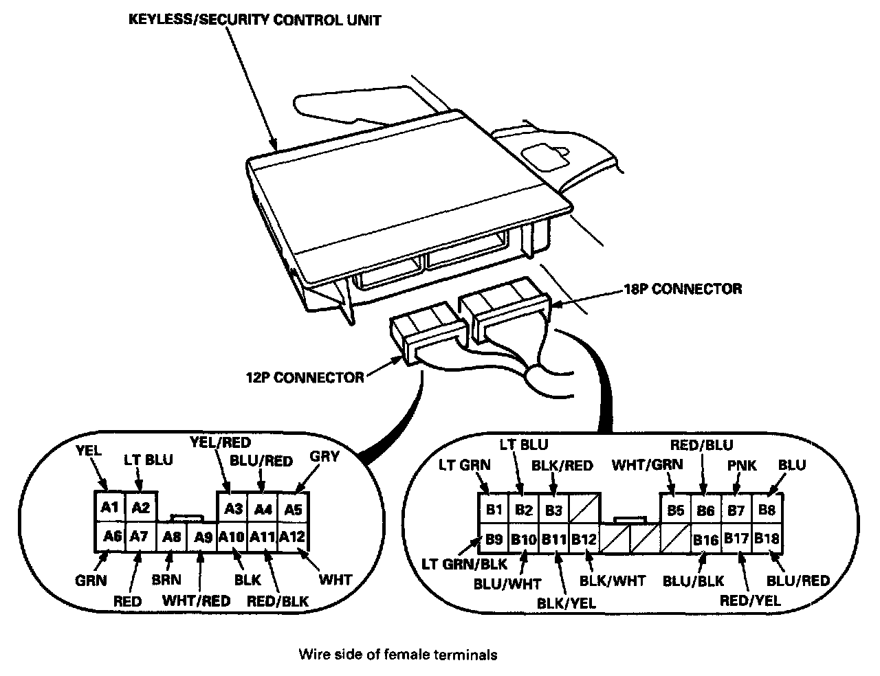 2. Disconnect the 12P and 18P connectors from the security control unit.