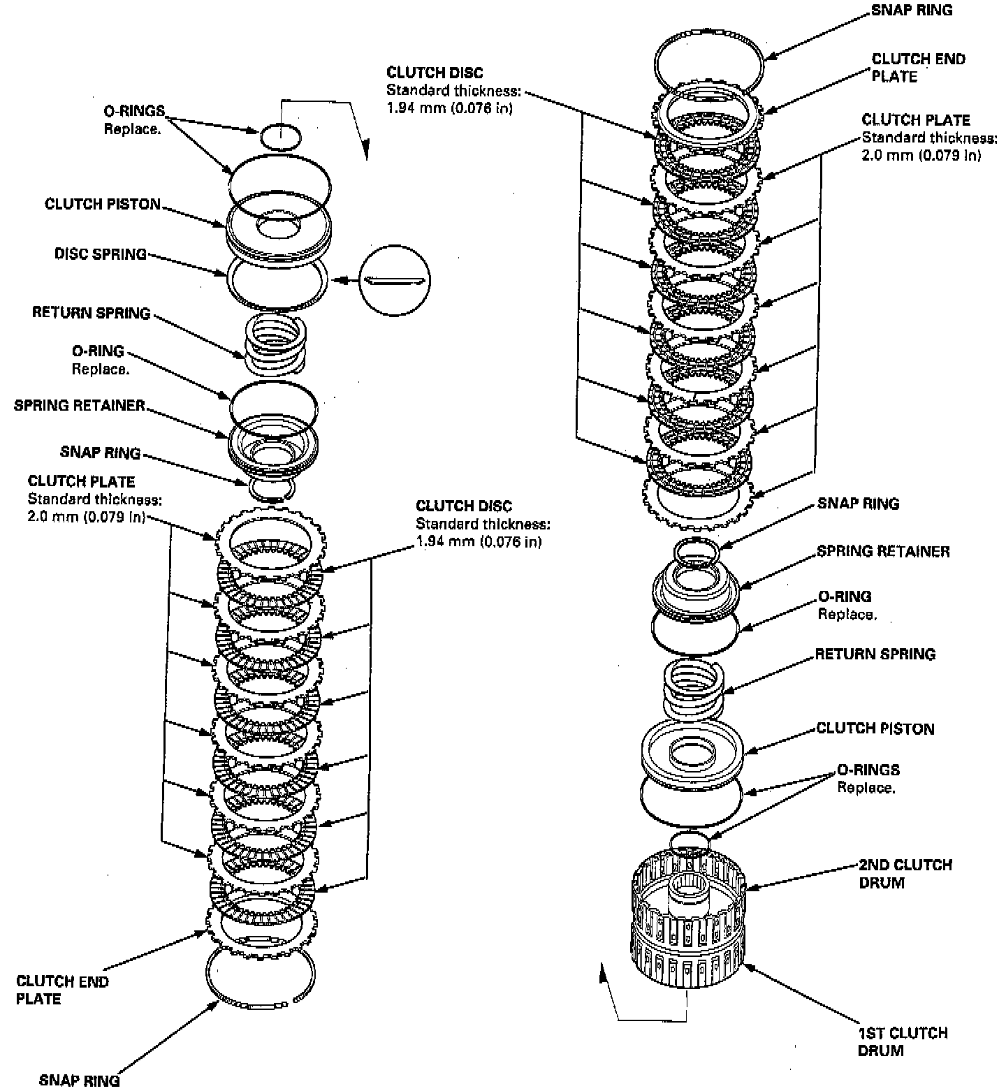 The model has two types of spring retainers, you may find either type in the clutch assembly. Some spring retainer have seal lips, and do not have O-rings. The seal lip is undetachable from the spring retainer.