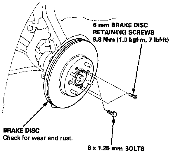 - Before installing the brake disc, clean the mating surfaces of the front hub and brake disc.