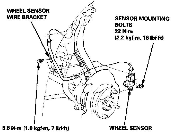 11. Remove the wheel sensor wire bracket, then remove the wheel sensor from the knuckle (with ABS).