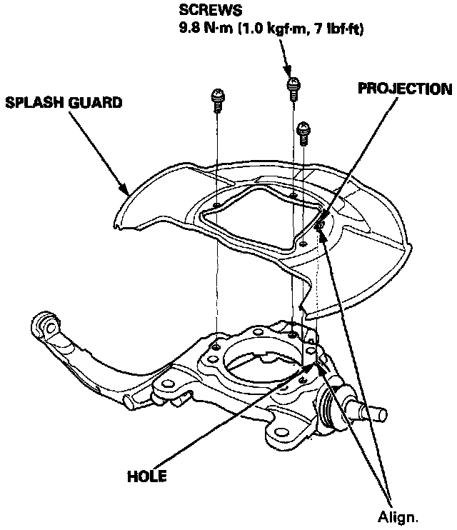 NOTE: Align the projection in the splash guard with the hole on the knuckle.