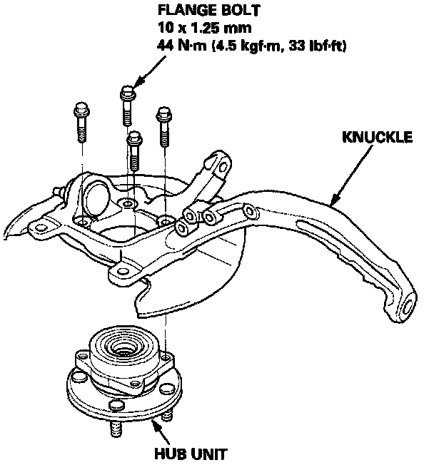 8. Install the knuckle on the hub unit, and tighten the flange bolts.