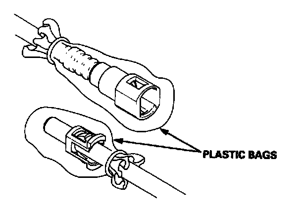 5. To prevent damage and keep out foreign matter, cover the disconnected connector and pipe end with plastic bags.