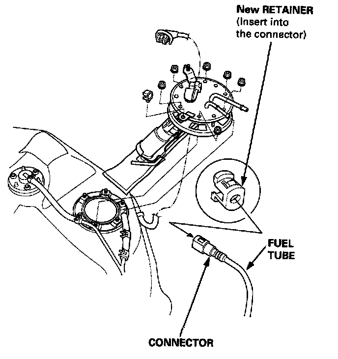 3. Before connecting a new fuel tube/quick-connect fitting assembly, remove the old retainer from the mating pipe.