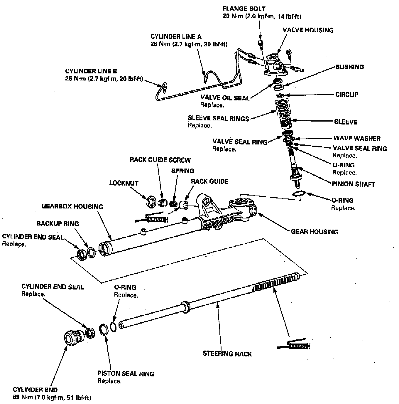 - Apply recommended power steering fluid to the parts indicated in the assembly procedures.