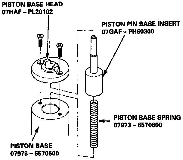 - When pressing the pin in or out, be sure to position the recessed flat: on the piston against the lugs on the base attachment.