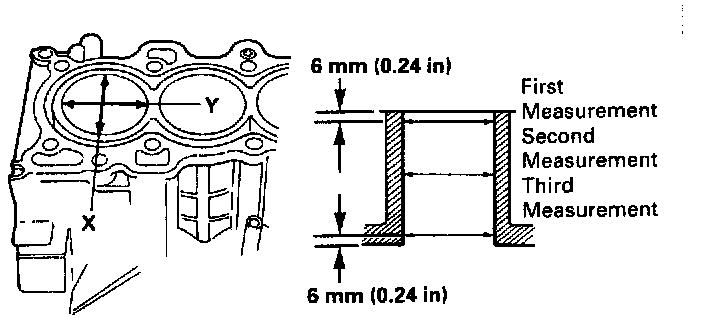 1. Measure wear and taper in direction X and Y at three levels in each cylinder as shown.