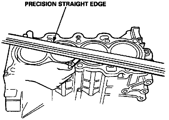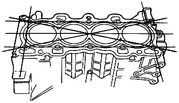 2. Check the top of the block for warpage. Measure along the edges and across the center as shown.