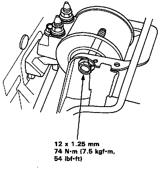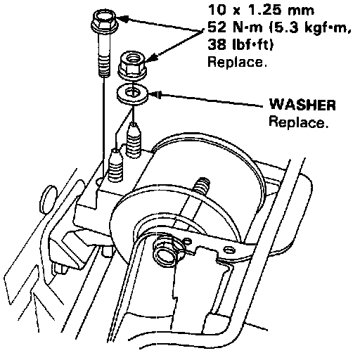 2. Install the engine side mount, then tighten the bolt/nuts on the engine side. Leave the mount bolt loose.