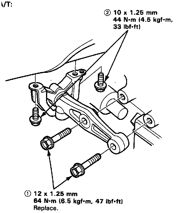 1. Install the transmission mount, then tighten the bolt/nuts on the transmission side. Leave the mount bolt loose.