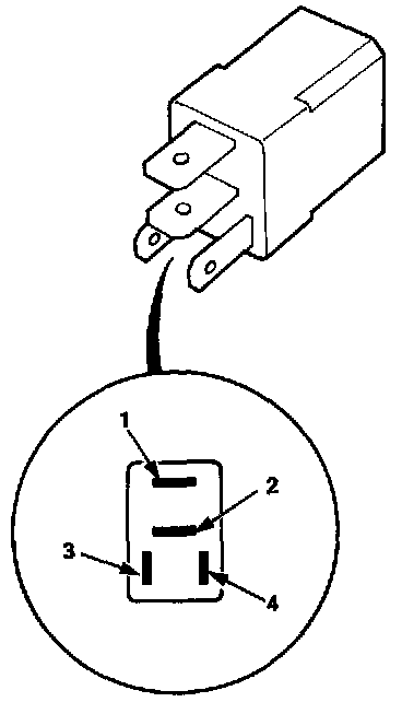 Relays / TestThere should be continuity between the No.1 and No.2 terminals when power and ground are connected to the No.3 and No.4 terminals, and there should be no continuity when power is disconnected.
