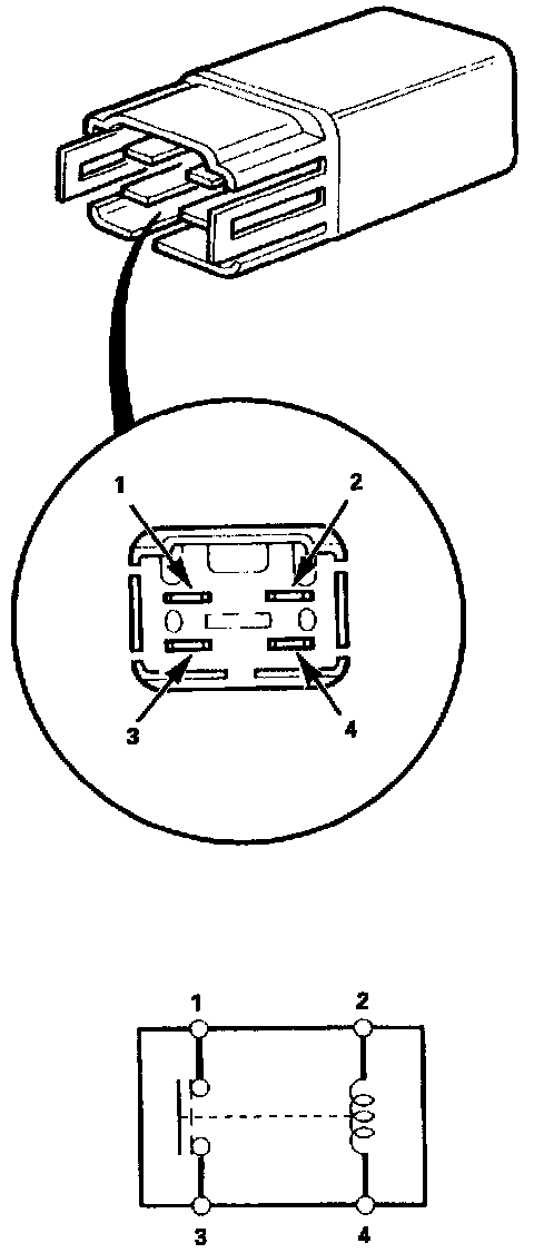 There should be continuity between the No. 1 and No. 3 terminals when power and ground are connected to the No. 2 and No. 4 terminals, and there should be no continuity when power is disconnected.