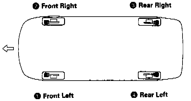 4. Repeat the procedure for each wheel in the sequence shown, until air bubbles no longer appear in the fluid.