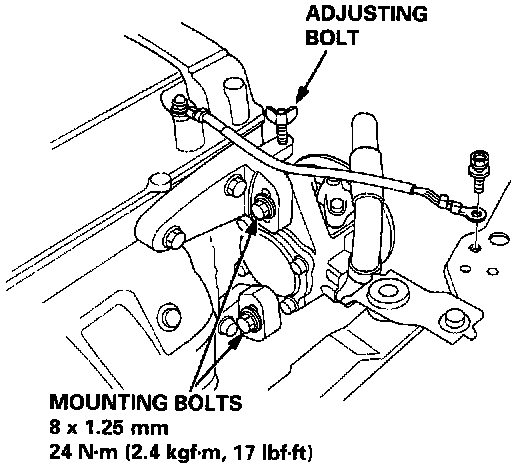 2. Loosen the adjusting bolt and mounting bolts, then remove the P/S pump belt.