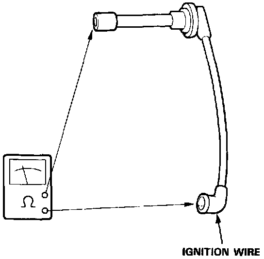 3. If resistance exceeds 25 K Ohms, replace the ignition wire.