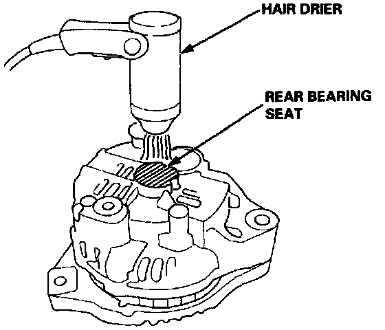 2. Heat the rear bearing seat with a 1,000 W hair drier for about five minutes (120 - 140° F, 50 - 60° C).