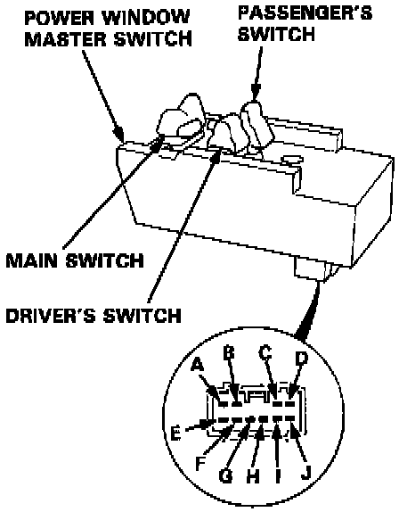 The driver's switch is combined with the control unit so you cannot isolate the switch to test it. Instead, run the master switch input test procedures No. 1, 2, 3, and 5. If the tests are normal, the driver's switch must be faulty.
