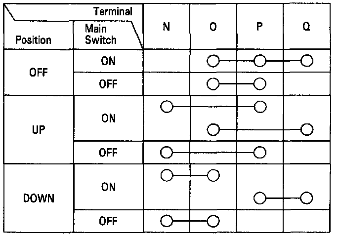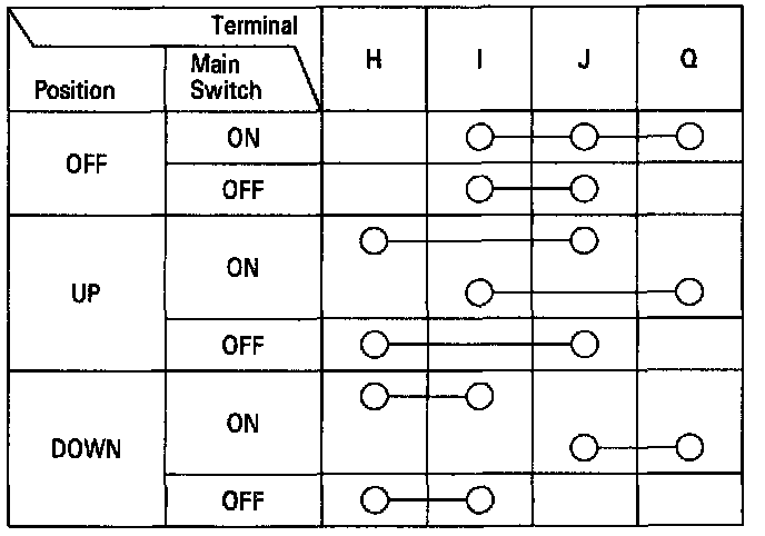 3. Check for continuity between the terminals in each switch position according to the tables.