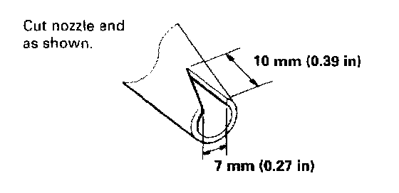 9. Before filling a cartridge, cut the end of the nozzle as shown.