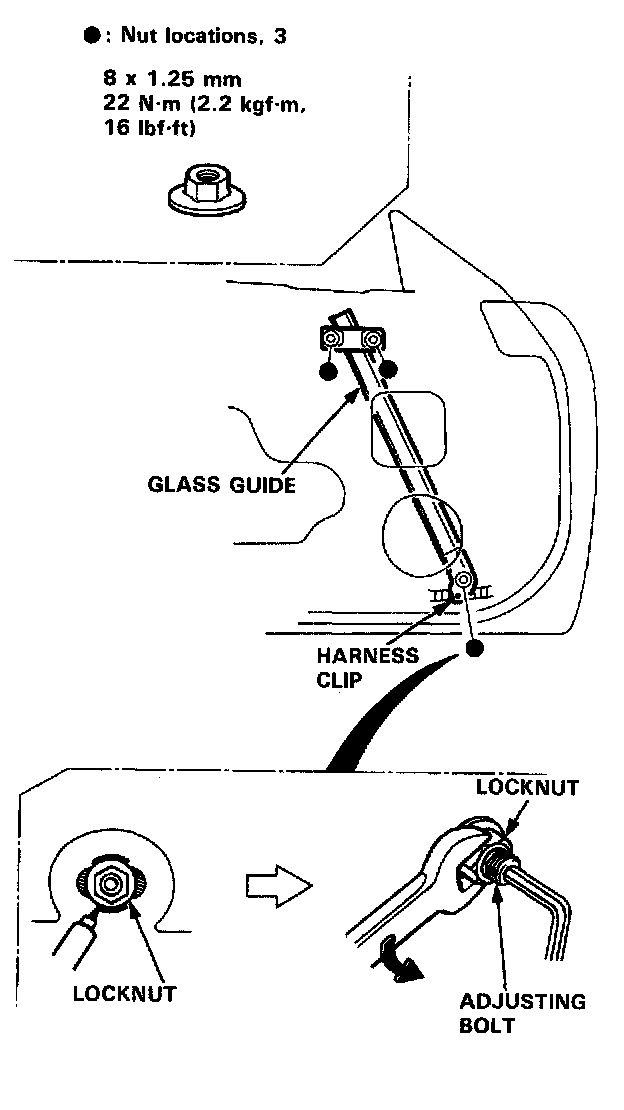 10. Roll the glass up and down to see if it moves freely without binding. Also make sure that there is no clearance between the glass and weatherstrip when the glass is closed. Adjust the position of the glass as necessary.