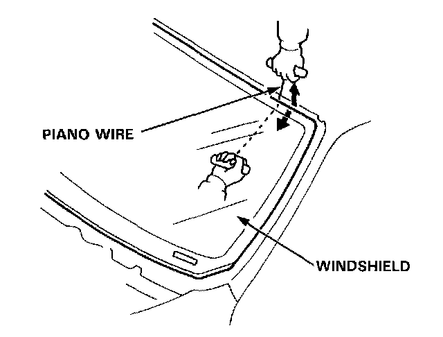 CAUTION: Hold the piano wire as close to the windshield as possible to prevent damage to the body and dashboard.