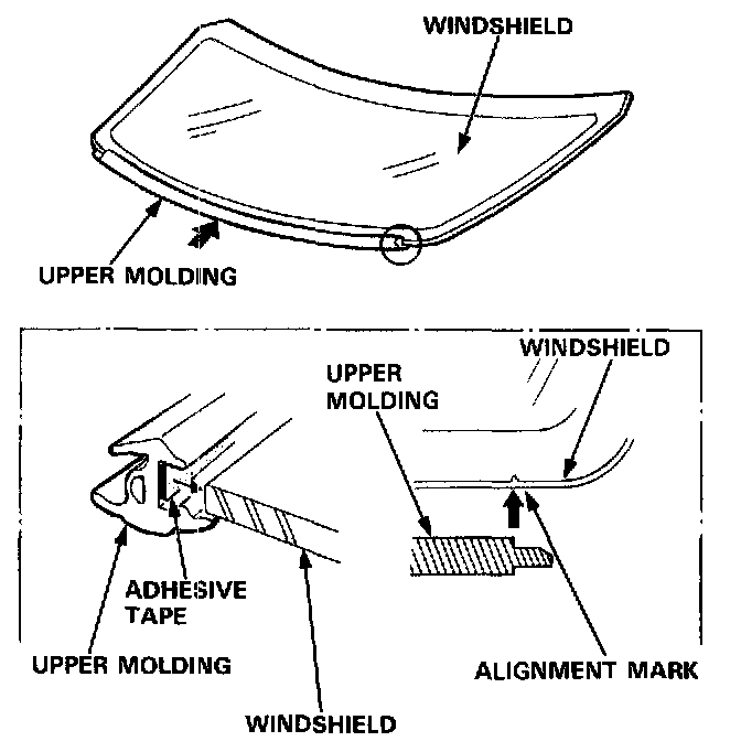 3. If the old windshield is to be reinstalled, use a putty knife to scrape off all traces of old adhesive, then clean the windshield surface with alcohol where new adhesive is to be applied.