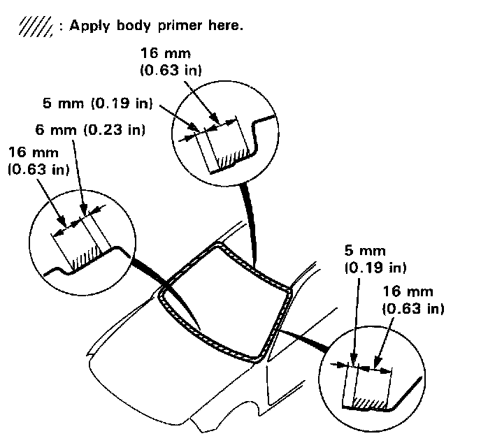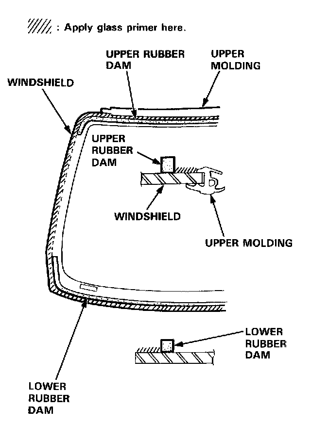 - Never touch the primed surfaces with your hands. If you do, the adhesive may not bond to the windshield properly, causing a leak after the windshield is installed.