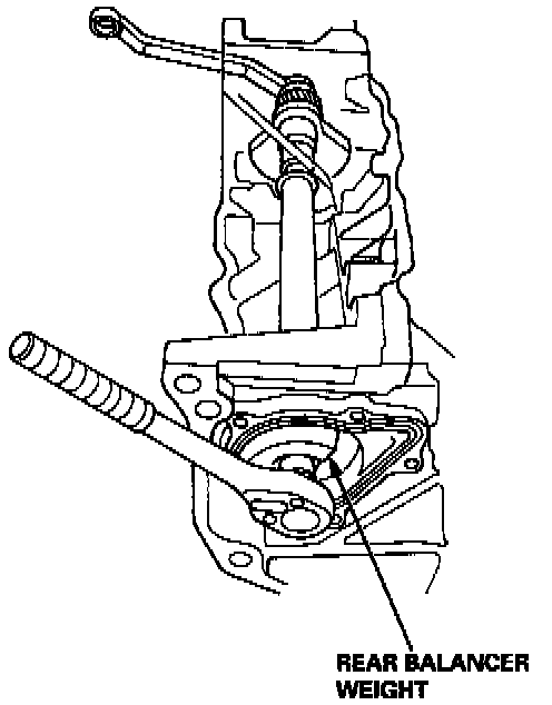 3. Hold the balancer shaft as shown, then remove the rear balancer weight.