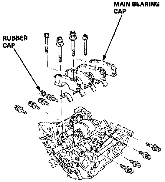 17. Reinstall the main caps and bearings on the cylinder block in proper order.
