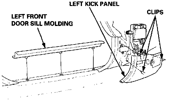 6. Remove the left front door sill molding and the left kick panel.